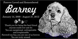 Home > Dog Pet Memorials > Style Design B502 12 x 6 inches Custom Engraved American Cocker Spaniel Dog Solid Granite Pet Memorial